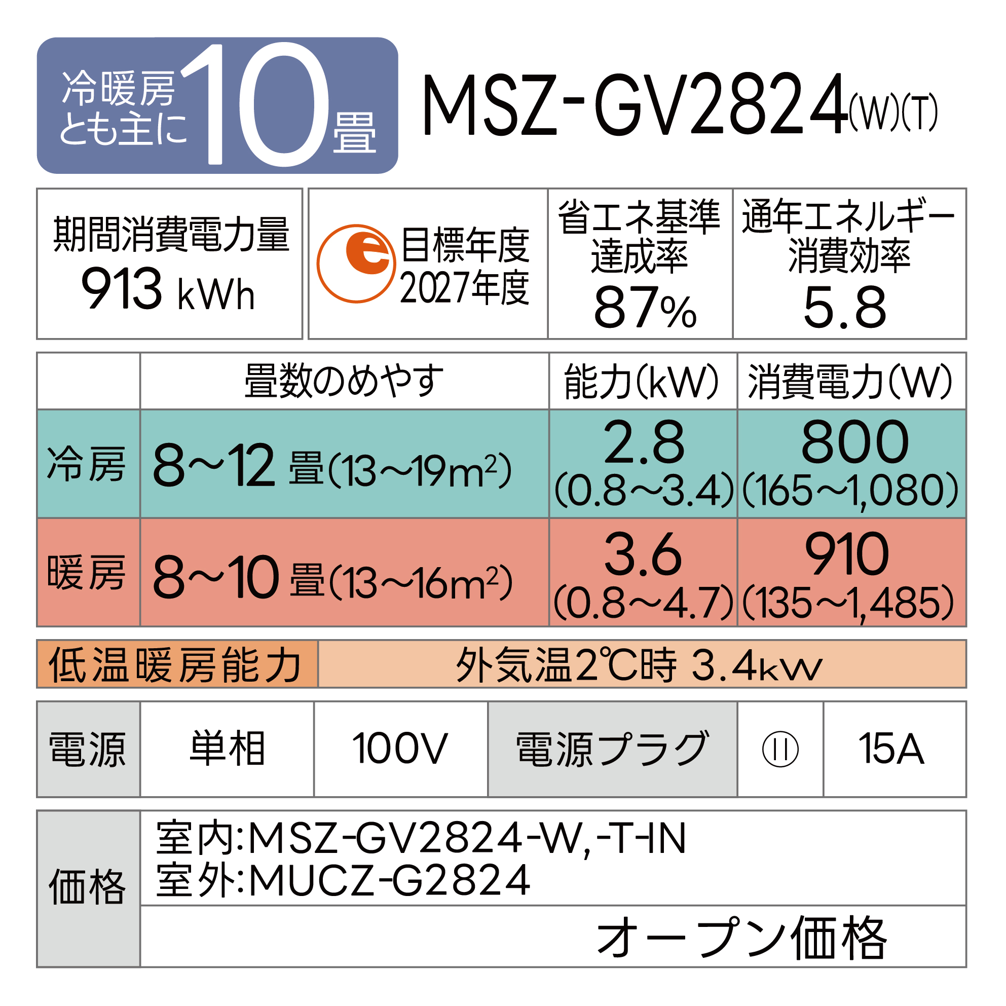 ■室内機:MSZ-GV2824-W-IN